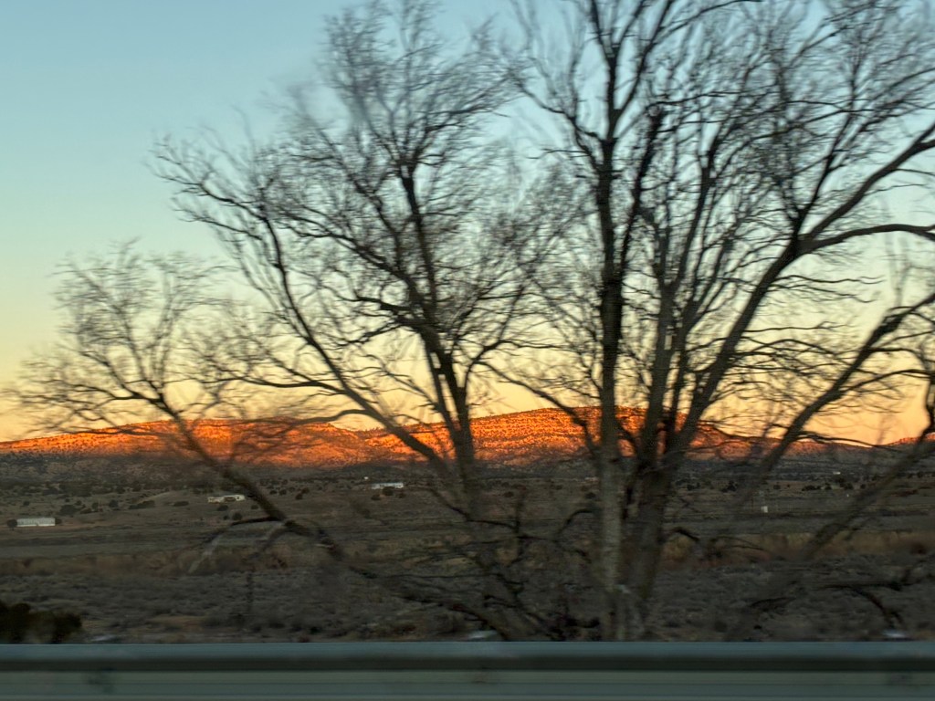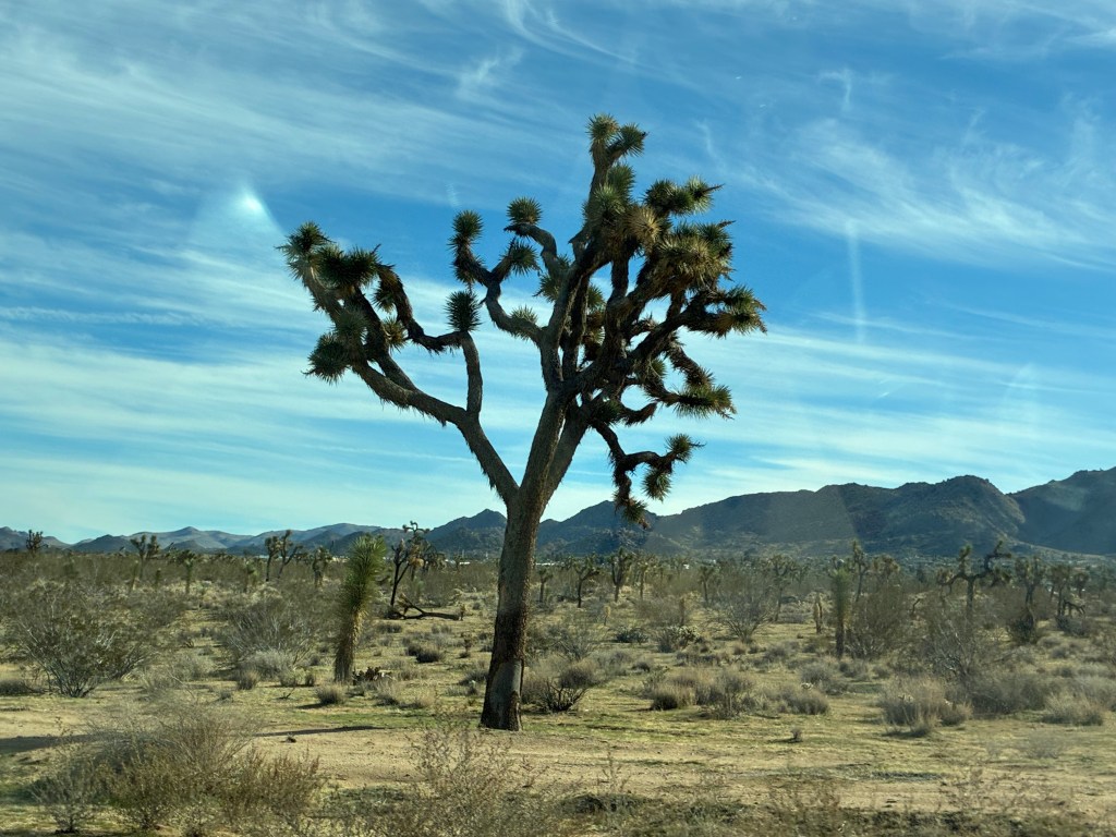 During the typical prep weeks before Christmas, we unexpectedly raced to California and back. We pressed hard, making the 4,000-plus-mile trip in seven days. Most of it was pleasant, even inspirational, as we wound up into the tree-covered mountains and down to the windswept deserts with strange, prehistoric rock formations, cacti, and Joshua trees. True, the tire blowout in flat, scrubby Oklahoma as the sun was setting was scary. And my low vision from quickly worsening cataracts made night driving nerve-wracking, but those were only two nights.