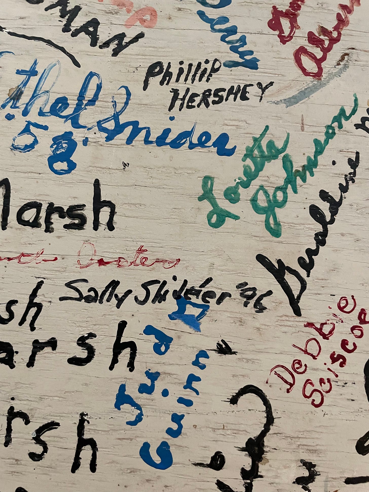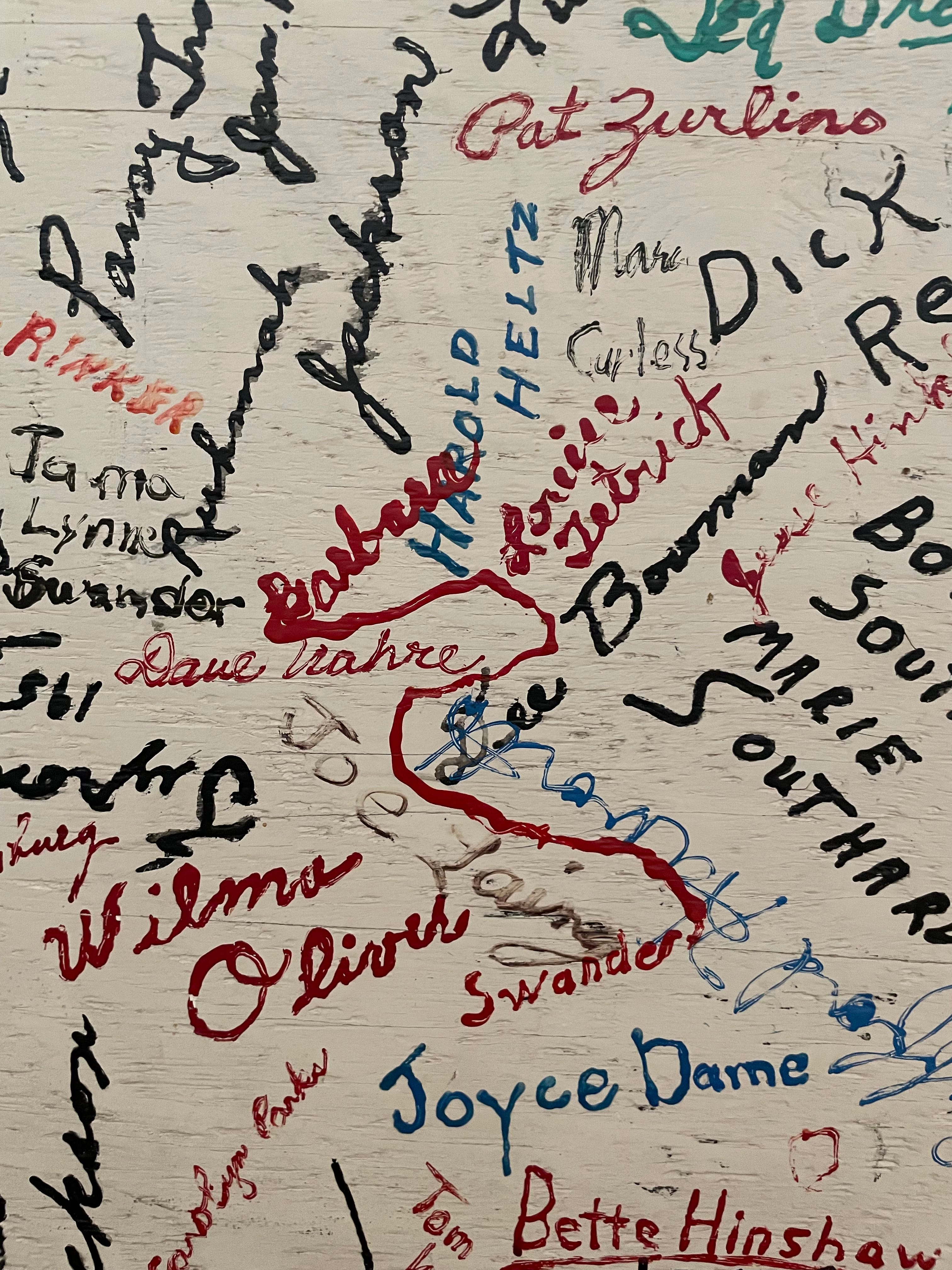 Now, I’m the keeper of these disparate names, separated by time and generations and a jagged saw. These people, many of whose voices I can hear and smiles I can see in my memory. I recognize the name board's legacy: honor the people, the shared journeys. But now I wonder: what icomes next? What is mine to do with their signatures?