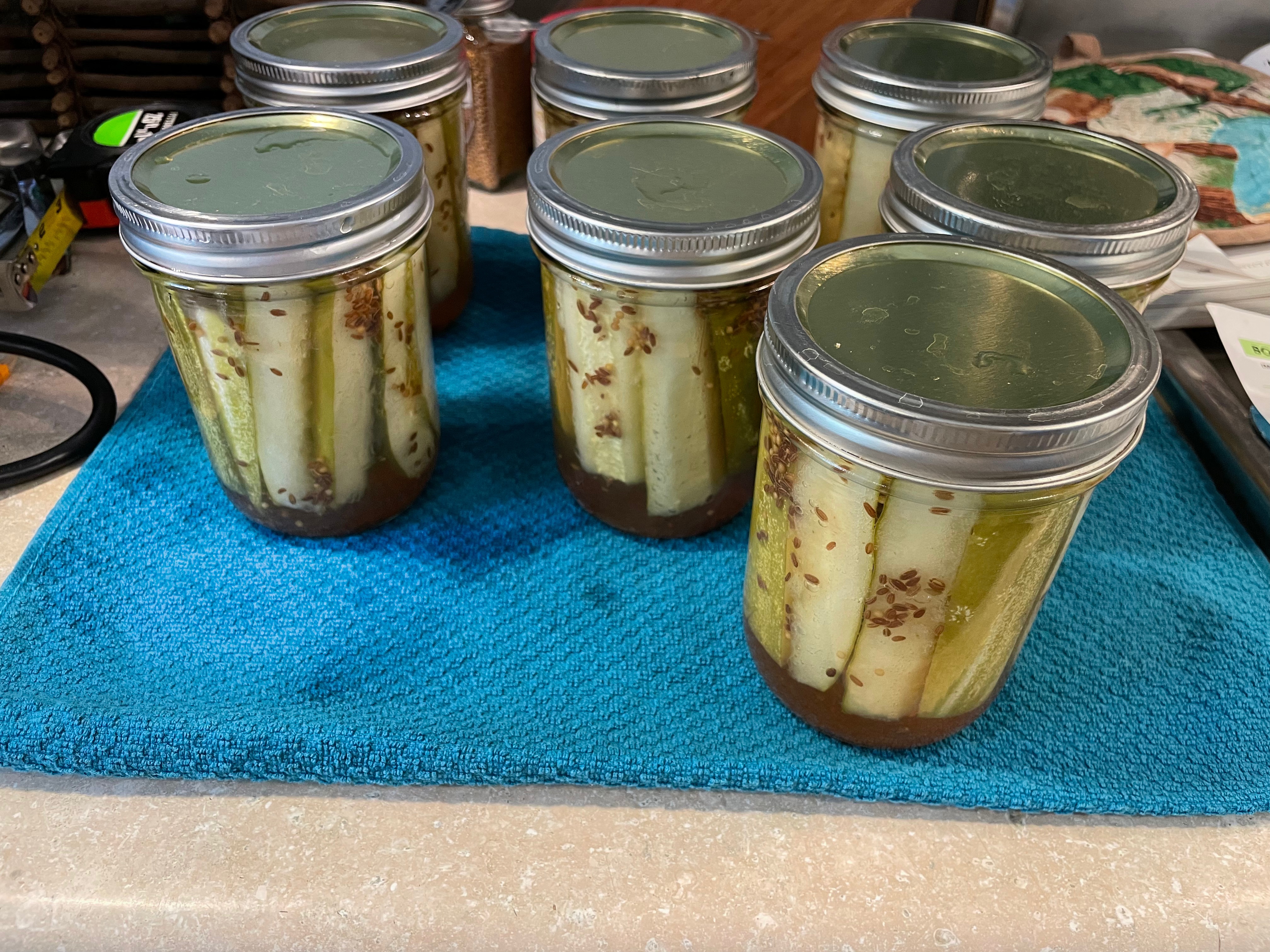 Finally, I was ready to pack the spears into the wide-mouth jars.