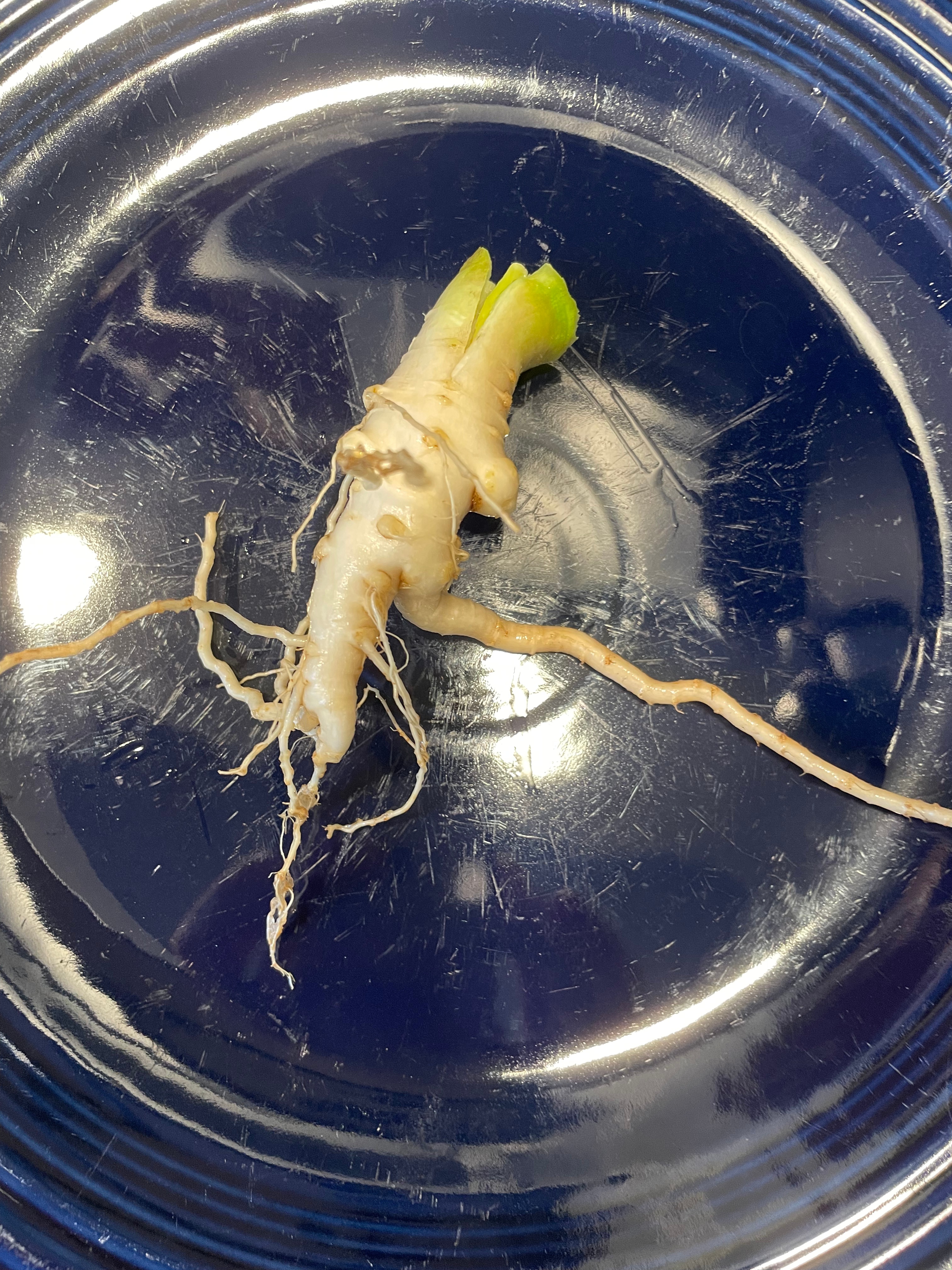 I was willing to give the little guy a chance. After I scrubbed and peeled it, only about an inch and a half remained. I tasted it. Oooh. Bitter! Into the trash, it sailed.