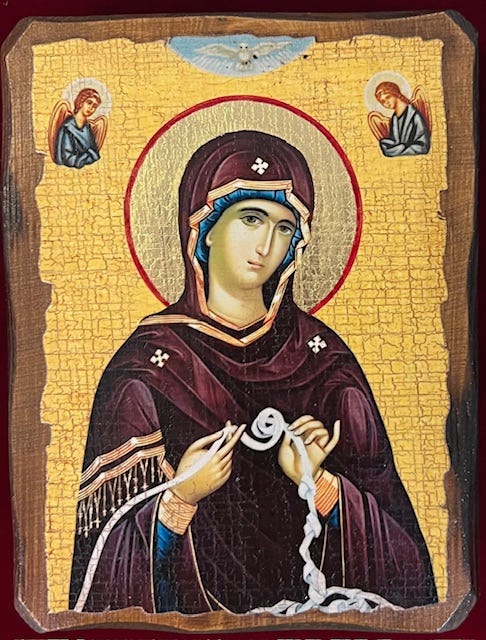 Oh, Mary, Undoer of Knots, Heavenly Mother of us all, counsel me. Share with me your maternal and holy wisdom.