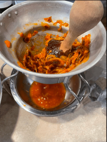 When she’s at our house, I try to find something old-fashioned or unusual to do in the kitchen. She’s collected ripe persimmons from the frozen, leaf-covered ground and then squished the persimmon pulp through Ah’s old ricer to make Mamaw’s persimmon pudding recipe.
